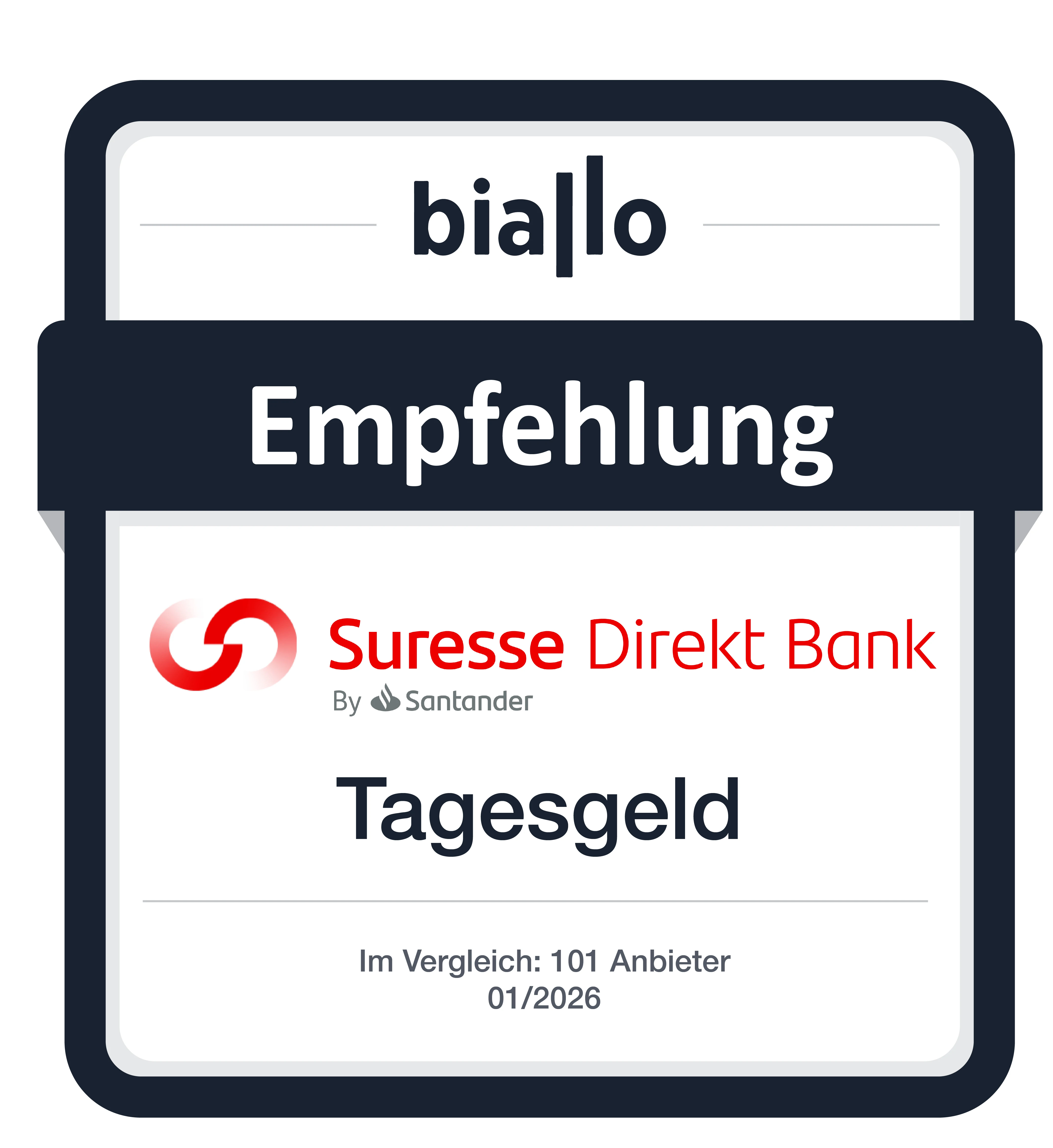 Ihre Einlagen sind durch die europäische Richtlinie 2014/49/EU geschützt. Suresse Direkt Bank ist Mitglied des spanischen Einlagensicherungsfonds, der Ersparnisse und Anlagen bis zu 100.000,00 € bzw. 200.000,00 € bei Gemeinschaftskonten absichert.